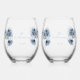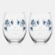 Artistic Blue Flowers Wedding Stemless Wine Glass