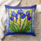 Artistic Blue Iris Floral Stained Glass Accent Pillow