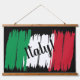 Wood topped wall tapestry features artistic brushstroke version of the flag of Italy with customisable text overlay on black background.