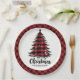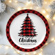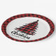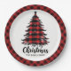 Artistic Buffalo Plaid Tree Name Christmas Paper Plate
