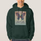 A stylish dark green hoodie featuring a vibrant, artistic butterfly design with intricate patterns and pastel shades. The word "Butterfly" is elegantly scripted below the design, adding a touch of sophistication. Perfect for casual wear or as a gift for nature lovers.