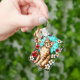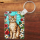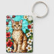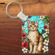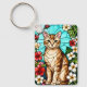 Artistic Feline Portrait Amid Tropical Flowers Key Ring