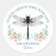 Artistic dragonfly gardener landscaper business product label stickers, featuring a dragonfly and florals in a round logo style.