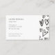 Stand out with artistic heart business card with hand drawn seamless pattern hearts on a black background with white rectangle in the middle holding a monogram in modern minimalist font. Back side has all your personal information in same font left aligned with black hearts on white background border to the right.