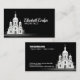 Artistic Line Art Church on Black Business Card