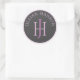 Artistic Monogram Name Logo Raspberry Violet Classic Round Sticker