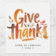 Artistic Orange GiveThanks Autumn Brush Script Wine Label