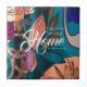 Artistic Orange Pink Navy Botanical Leaves Welcome Ceramic Tile