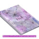 This beautiful spiral-bound notebook features an artistic and vibrant design adorned with intricate hand-drawn floral patterns. Predominantly in shades of purple and blue, the large flowers evoke a sense of whimsy and creativity. Notably, the centre of the cover bears the name “Marcella” in elegant cursive script, suggesting that this notebook can be personalised for its owner. The watercolor effect in the background adds a dreamy touch, making it a unique and appealing choice for jotting down thoughts, sketches, or cherished memories.