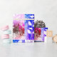 an original artwork made by my studio of pink blue abstracted tiled pattern using watercolor and texture abstract expressionism and botanical eucalyptus leaves for a beautiful wrapping paper.