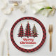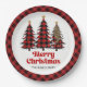 Artistic Plaid Christmas Tree Custom Name Paper Plate