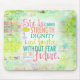 The product itself is good quality and I like the simplistic elegant design. The only criticism I have is that it's not really accurately represented by the picture provided. I thought that the mousepad would be a non-porous or laminate surface and as such the gold writing would actually shine against the soft pink. However the design is printed on a thick fabric surface, so the gold colour is just the shade of gold but doesn't stand out from the pink background. (See picture)