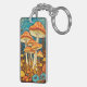 Artistic Retro Mushroom Forest Illustration Key Ring