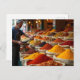 The imaginative rendering enhances exotic spices' vibrant colours and textures worldwide, emphasizing the market's role as a crossroads of Italian, Chinese, and global culinary traditions. Through artistic expression, this postcard conveys the feeling of being surrounded by turmeric, star anise, and saffron - a sensory journey that can only be hinted at through conventional imagery.
