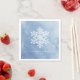 Personalised Christmas paper napkins feature decorative white snowflake on winter blue artistic watercolor background, modern and trendy.