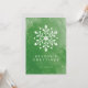 Decorative white snowflake leaves on green artistic watercolor background, modern and trendy. Great Christmas cards for family and company.