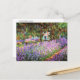 A fine art postcard featuring the painting, The Artist's Garden at Giverny (1900) by Claude Monet (1840-1926), a renowned French Impressionist painter. Monet's personal garden is depicted, showcasing rows of purple iris beds at his home in France.