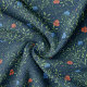 Poppies and leaves intertwining in a pattern inspired by William Morris and using some of the same botanical elements he used. The background colour is navy blue.