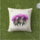 A stylish pillow in beautiful neutral colours of the Arts & Crafts movement. The pillow features three Scottish thistles with the four squares pattern in the four corners. The back is a darker solid colour which you can customise to any colour you like.