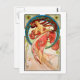 1898 Art Nouveau lithograph poster by Czech artist, Alphonse Mucha (1860-1939). Beautiful woman in a red dress, flowers in her long, flowing, bright red hair, her back arched, looking over bared shoulders, standing on her toes.