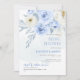 ArtsApp bridal shower invitation -- dusty blue watercolor roses, dusty blue foliage and white daisies sprinkled with gold dust. All elements are editable. Copyright © 2023 ArtsApp™. All rights reserved.