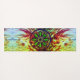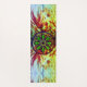 This artsy, abstract painting shades of red, green and blue splattered through out the mat with a decorative green petal mandala as the centerpiece. Artsy cool vibe with vibrant energy to get you going with your yoga practice.