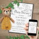 Pretty and elegant paper plates for your upcoming baby shower feature an illustration of a teddy bear sitting under an umbrella with bold font for the word "Baby Shower" surrounded by a lovely frame with easy to update text.