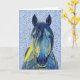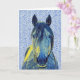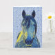 Artsy Blue Horse on Pattern Art Note Card 1