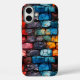 This phone case has an artsy brick wall on it.