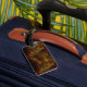 I was happy with the acrylic tag but it came with a thin leather strap to attach the tag to luggage (like a cat collar). I replaced the strap with a metal ring off of a key ring as the leather strap would come undone or break easily as luggage is sometimes handled without much care by airlines. Printing is great. Colours and positioning of the design I put on the tag were perfect. Very pleased.