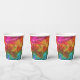 These paper cups have an artsy design on them.