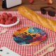 These paper plates have an artsy design on them.