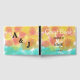 Romantic bold colours in pink yellow orange blue with hints of white for a summertime modern wedding. Personalise with the bride and groom's first names and date wedding in black text. Monogrammed initials on back. Our Love Story is written on spine of book in white typography sagainst black background. Original Artwork Design by TamiraZDesigns.