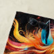 This beach towel has a artsy horse on it.