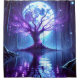 This shower curtain has a beautiful tree scene with the moon on it.
