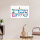 Hand-painted, artsy Hebrew lettering, the colourful words say "Shabbat Shalom."