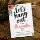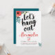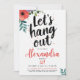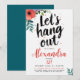 This “Let’s Hang Out” Garden Party Birthday Invitation features a modern, youthful design with bold black brush script on a clean white background, accented by vibrant watercolor splatters. Red and green watercolor flowers add a fresh, artistic touch, making it perfect for a backyard garden party, surprise birthday celebration, or summer gathering.