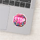 This sticker has an artsy stop sign on it.