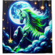 This mystical shower curtain has an artsy green striped unicorn scene on it.