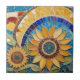 Arty Yellow Sunflower Abstract Faux Mosaic Blue Ceramic Tile