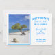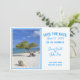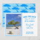 This beautiful destination wedding save the date invitation features a wind bent divi divi tree from Aruba. The tree is found on many Caribbean islands, but in Aruba, the trees grow pointing in a southwesterly direction because of the trade-winds. Follow the pointing trees to the beach no matter where you are on the island.