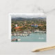 Add your own custom business or personal message to this postcard featuring a pretty scene from the tropics. Shown is a view of Oranjestad, Aruba, where dozens of boats sit at the ready in a marina at the edge of the Caribbean Sea.