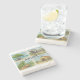The coasters are gorgeous, a quality feel and heavy weight. They look like a precious archeological find. A rustic stone juxtaposed with a modern floral black and white print. I like the way the print goes slightly imperfect on the cut stone edges giving them a kind-of natural beauty.