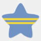 Aruba's national flag was adopted on March 18, 1976. The design consists of a field of light blue (called "Larkspur"), two narrow parallel horizontal yellow ("Bunting Yellow") stripes in the bottom half, and a four-pointed white-fimbriated red ("Union Flag red") star in the canton. The flag was designed in part by vexillologist Whitney Smith.