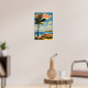 Aruba Travel Poster Design. Aruba is a Caribbean island known for its white-sand beaches, crystal-clear waters, and year-round sunny weather. Renowned for its vibrant culture, diverse marine life, and adventurous activities like snorkelling and diving, it's a top destination for tropical getaways.