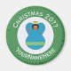 Round magnet for Christmas decor featuring an angel dressed in the flag of Aruba. The angel is found inside a white fractal circle of squiggly squares with a background of green squiggly squares. Add your own text, if you wish. Personalise with a name and customise with the year. Fun stocking stuffer. Honour your Aruban heritage during the holiday season.