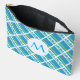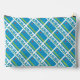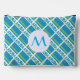 A tiled design using the Aruban flag or flag of Aruba shows on this accessory pouch. A round, fractal, circle of white squiggly squares has a place for an initial so you can personalise with a monogram. Great for travelers. Can make your trip better by helping with your packing needs.