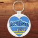 Nice key hanger with a heart depicted with the Arubian flag on it. The text says, "Aruban girl The background is white in color." Nice to give you as a gift or for yourself to show you pride in being Aruban. Colors: blue, red, yellow and white.