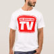 "AS SEEN ON TV" a stylish retro style design variation on this popular theme. With two toned lettering and screen surround, really makes this design look the part. The motif also appears on the back, however this shirt can be customised to your preferences, almost as good as remote control :)