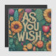 A dreamy thank you card featuring the iconic "As You Wish" phrase. Soft pastel hues create a magical atmosphere. The card might incorporate delicate floral elements or whimsical characters inspired by the movie. The typography is elegant and flowing, complementing the overall romantic feel.